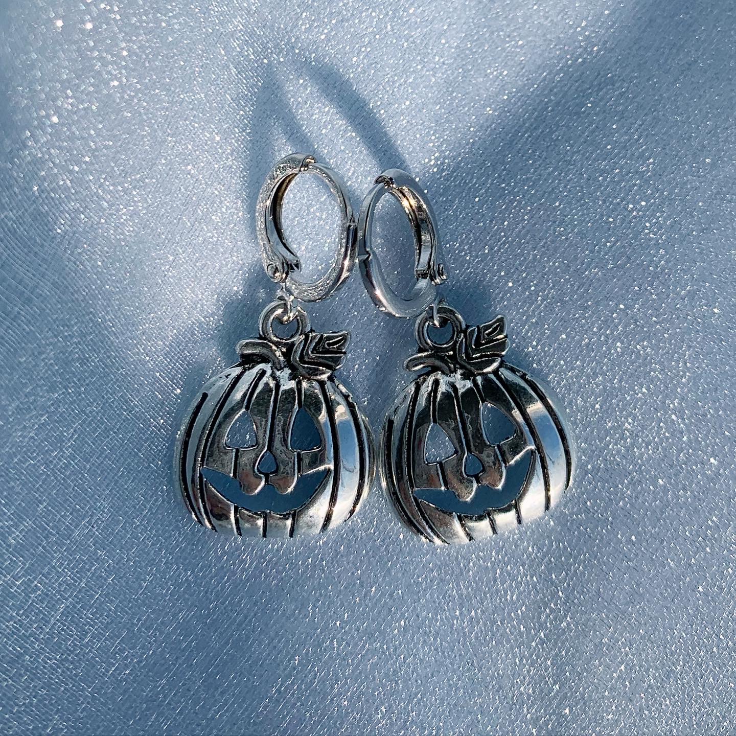 Spice up your Halloween outfits with a little pumpkin spice! Tibetan silver, pumpkin shaped earrings adorned on .925 sterling silver lever back (huggie) earring hooks.