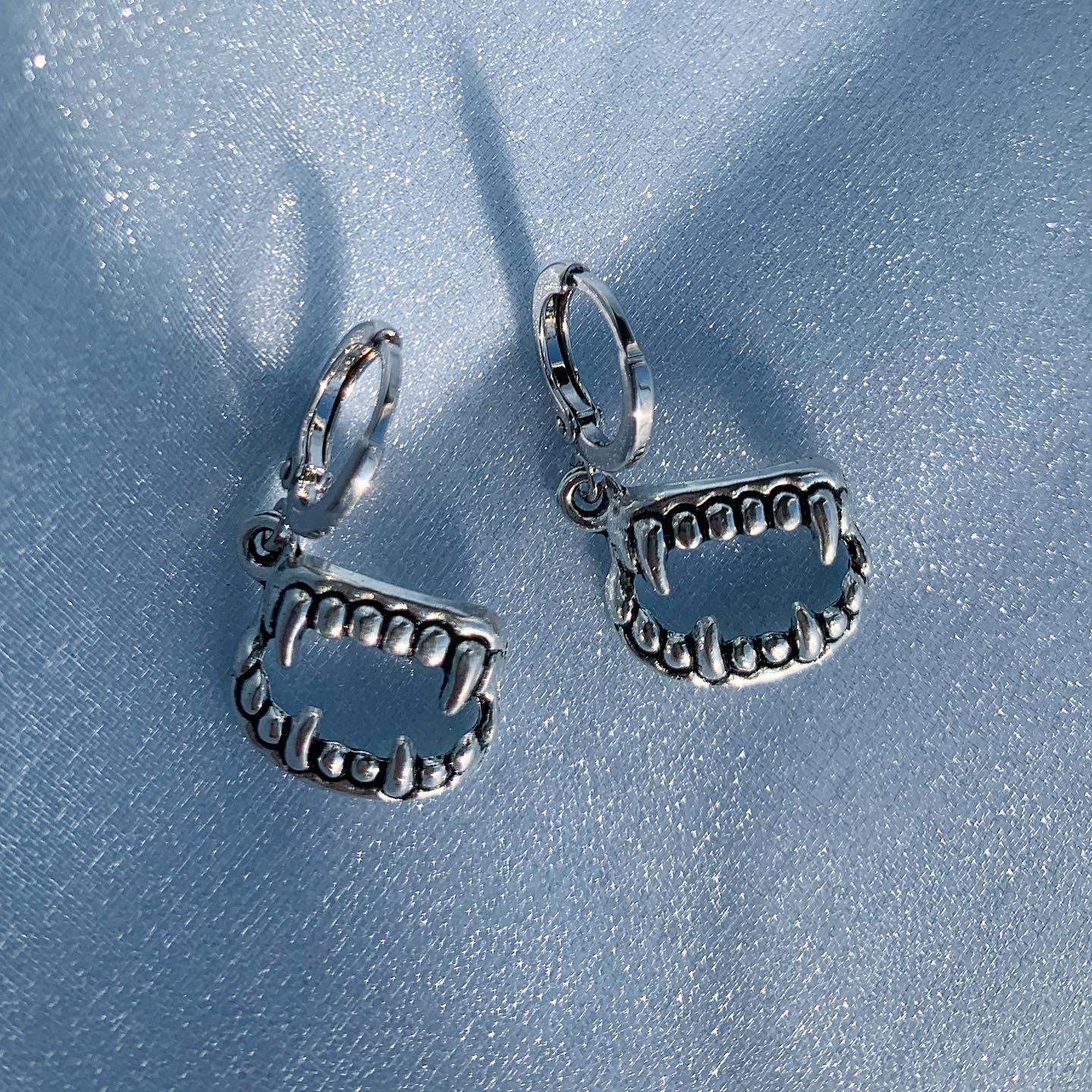 Fang shaped Tibetan silver charms adorned on .925 sterling silver lever back (huggie) earring hooks.