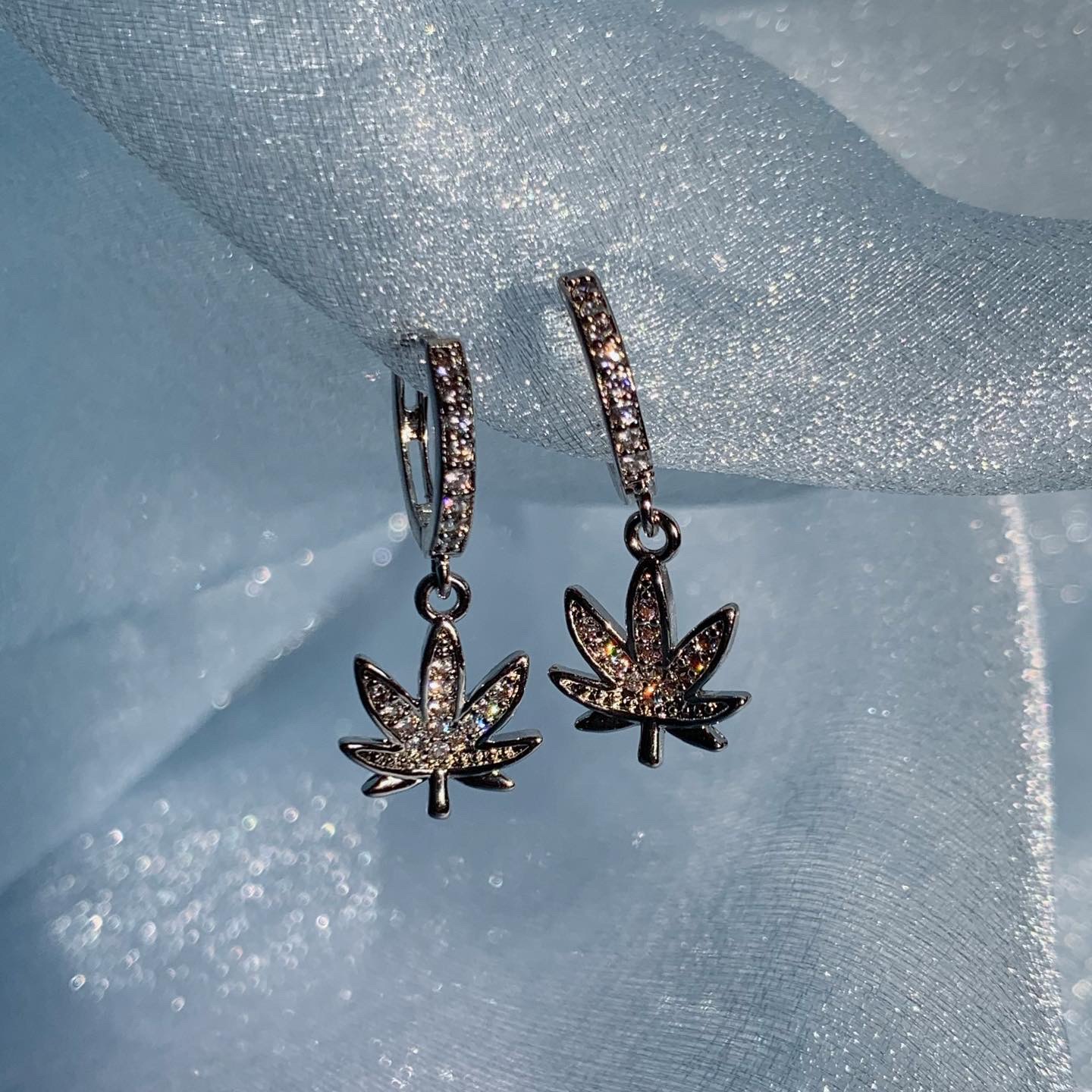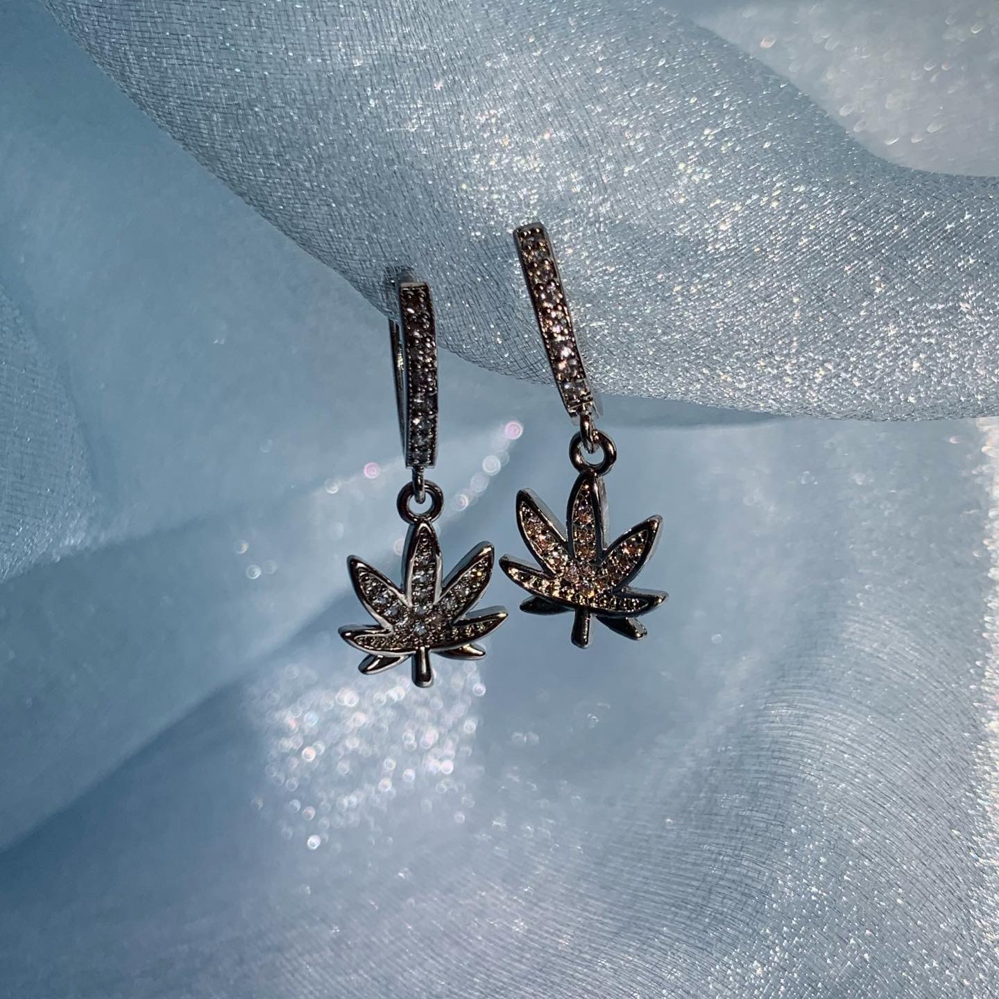 925 sterling silver maryjane leaf charm decorated clear cz crystals. Adorned on 925 sterling silver lever back earring hooks that are aligned with clear cz crystals.